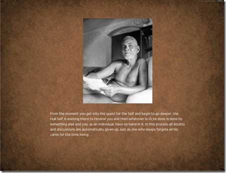 From the moment you get into the quest for the SELF and begin to go deeper, the real SELF is waiting there to receive you and then whatever is to be done is done by something else and you, as an individual, have no hand in it. In this process all doubts and discussions are automatically given up, just as one who sleeps forgets all his cares for the time being.